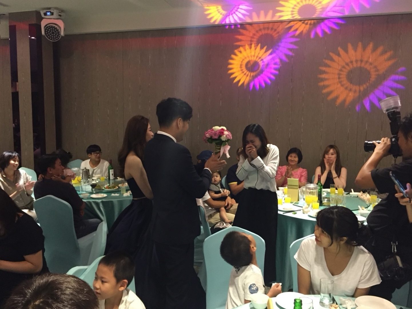 婚宴當天流程非常豐富,進行了好玩又瘋狂的舉牌默契大考驗、寶貝容容猜謎、溫馨的傳承捧花給多年好友,更浪漫的是智澄用心準備的驚喜唱歌,當他唱著兩人的定情曲-愛的就是你,彷彿回到23年前他遇見湘華一見鍾情的那刻,當年那個愛情萬歲至上的少年,經過時間淬煉成為能承擔一個家的好男人,謝謝你們讓我們見證初戀的美好。恭喜你們,幸福成家!